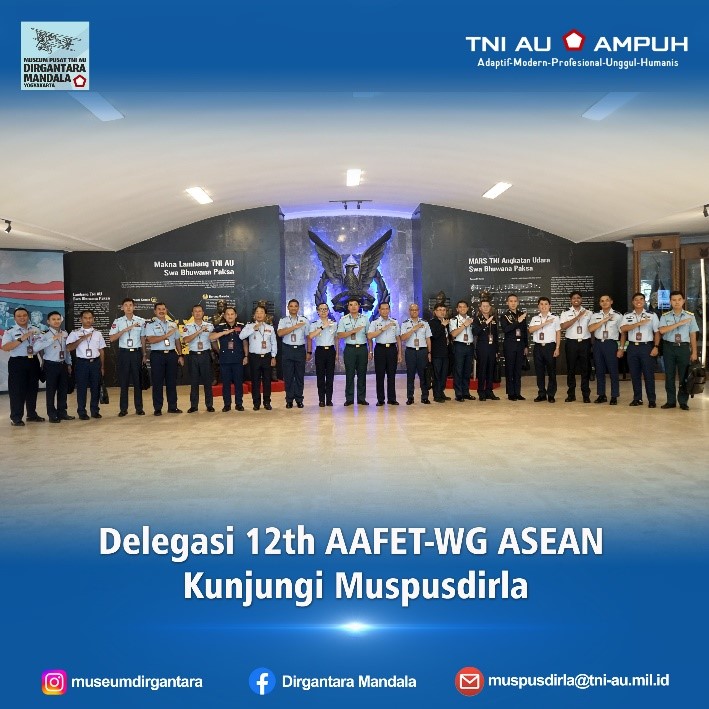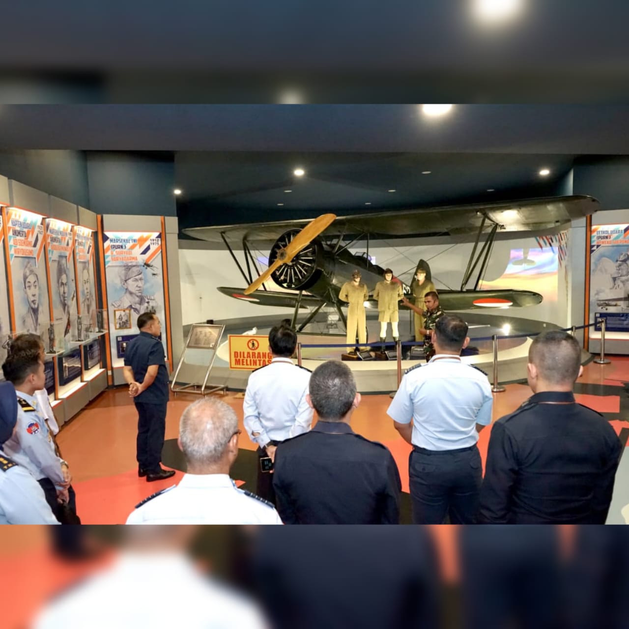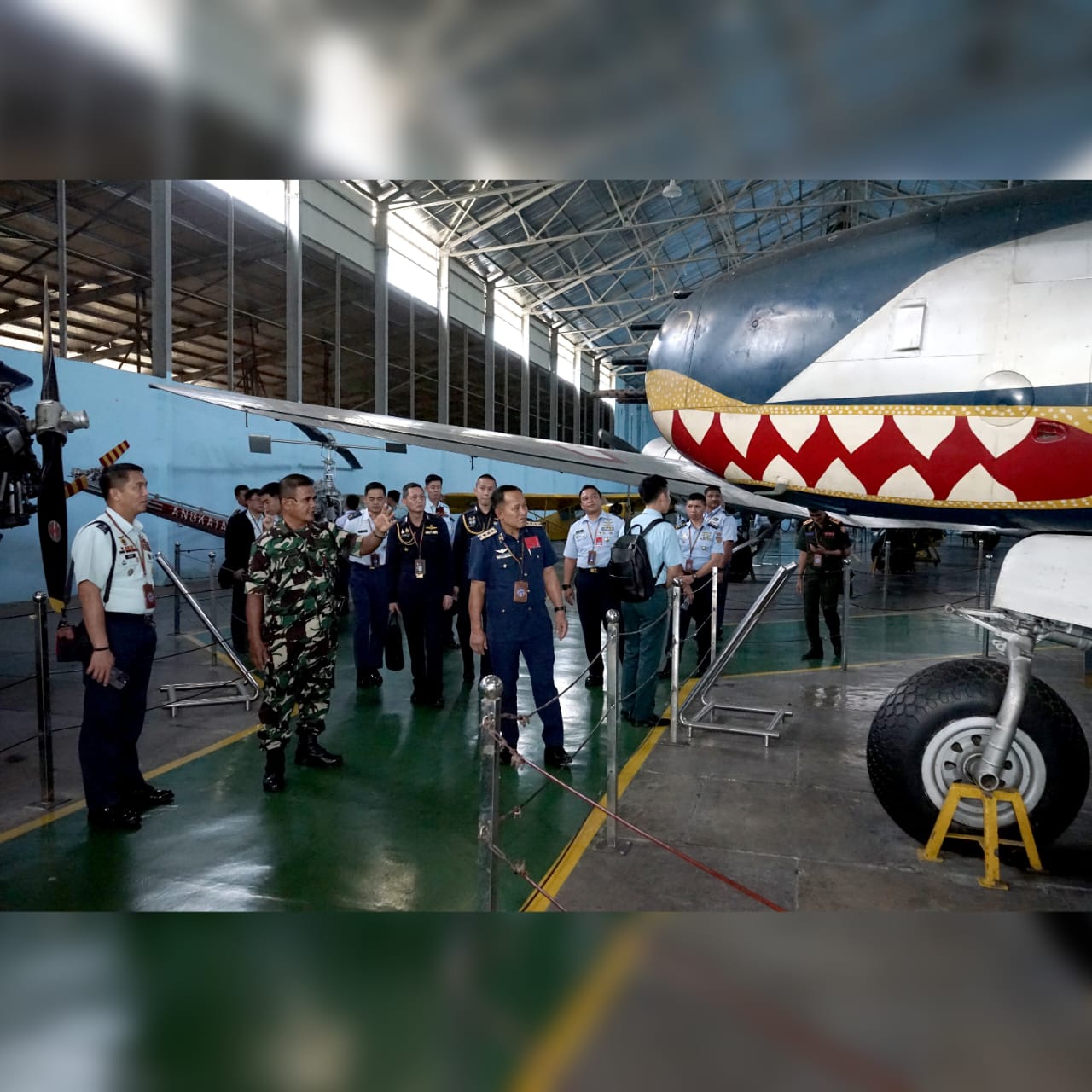 Delegasi berkesempatan melaksanakan tour museum dan mendapat penjelasan tentang sejarah perkembangan TNI Angkatan Udara serta koleksi di dalamnya.